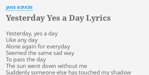Yesterday Yes A Day Lyrics By Jane Birkin Yesterday Yes A Day