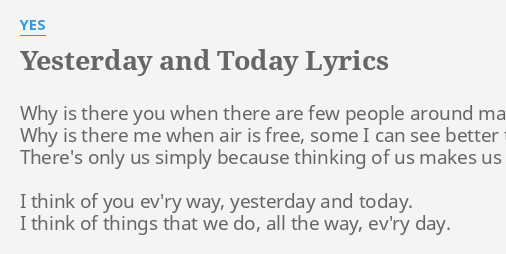 Yesterday And Today Lyrics By Yes Why Is There You